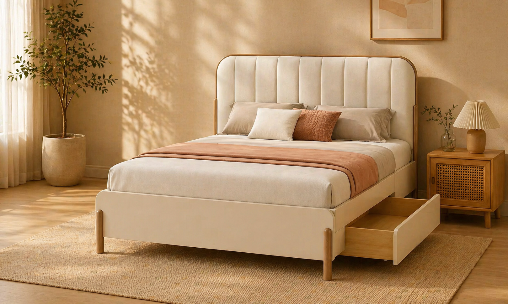 Ideal para quienes buscan funcionalidad, comodidad y estética en un solo mueble. Convierte tu dormitorio en un refugio relajante con un toque contemporáneo.